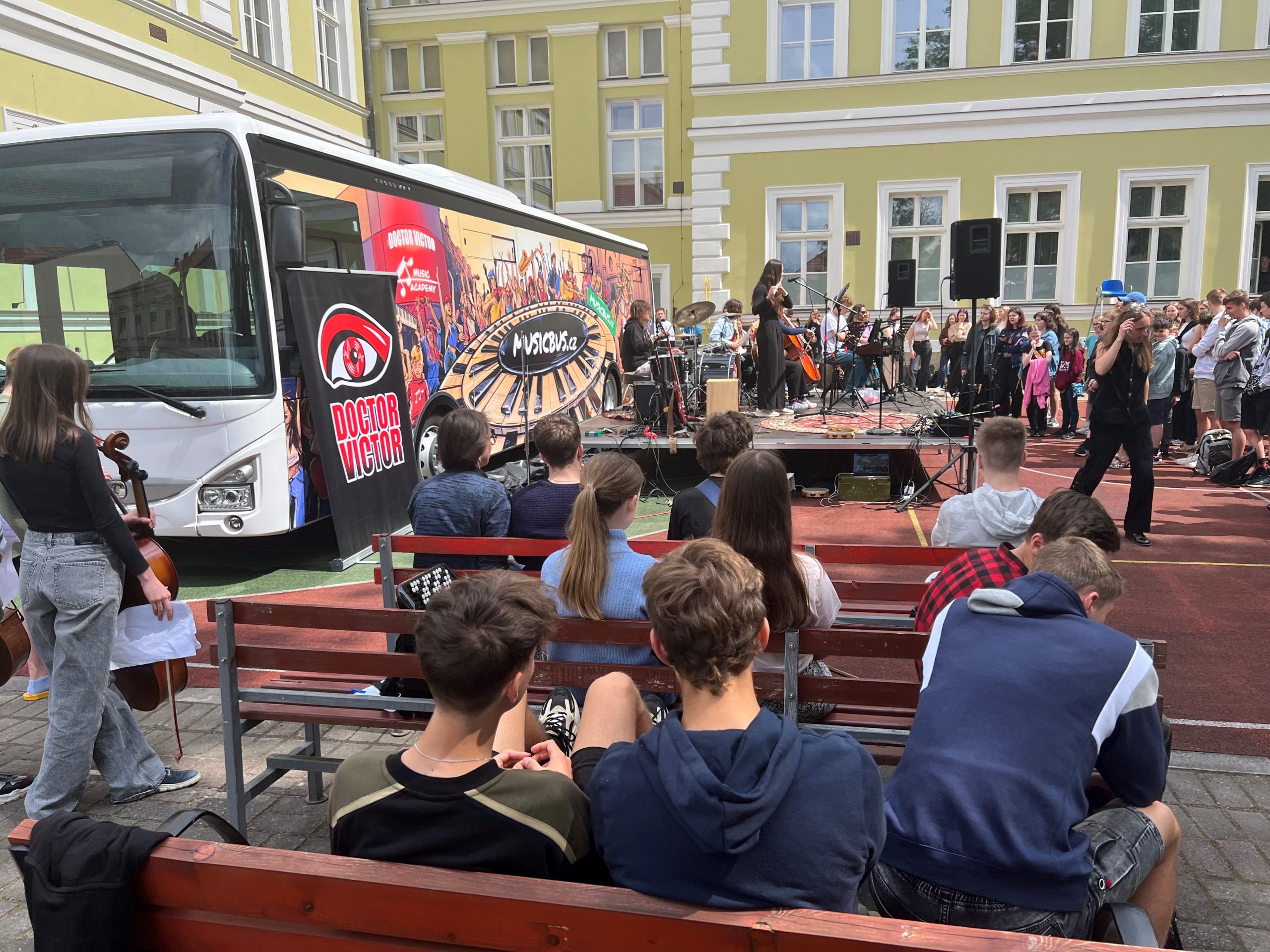 Il progetto Music Bus, reso possibile dalla collaborazione tra Iveco Czech Republic e la rock band Doctor Victor, ha previsto la fornitura di un Crossway Low Entry da 12 metri di lunghezza. Per questo programma dedicato alla musica, il veicolo è stato dotato di uno studio di registrazione, un’aula scolastica e un palcoscenico. Il Music Bus è così diventato centro educativo, ospitando svariate attività, tra cui una serie di esibizioni e dei laboratori guidati dalla Doctor Victor Academy, oltre a fornire supporto ai giovani musicisti del posto.