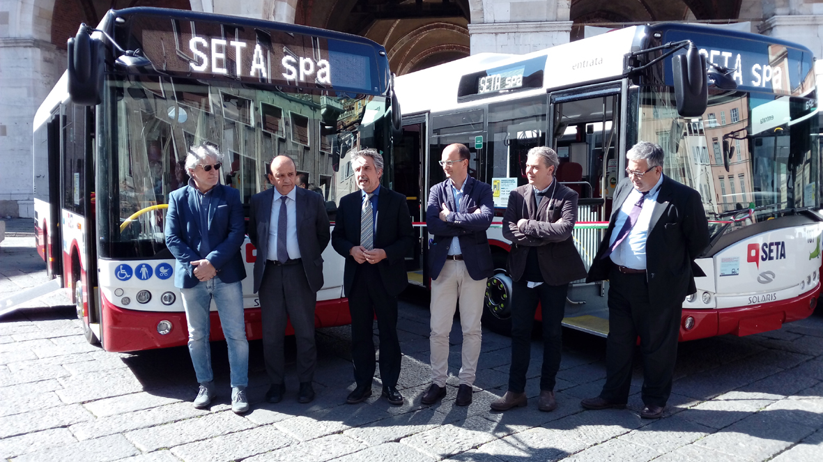 I nuovi mezzi Euro 6 destinati alla flotta urbana piacentina sono stati presentati ufficialmente questa mattina in Piazza Cavalli alla presenza di Paolo Dosi, sindaco di Piacenza, del Consigliere della Provincia con delega al Trasporto pubblico Luca Quintavalla e di Gianluca Micconi, Amministratore unico di Tempi Agenzia. A fare gli onori di casa sono stati Vanni Bulgarelli e Roberto Badalotti, Presidente e Direttore Generale di Seta.