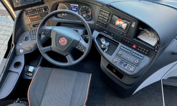 Il sistema di assistenza alla partenza in salita è standard sulla TopClass. L’impianto di telecamere veicola sul monitor dieci pollici disponibile alla sinistra del driver una visuale a 360 gradi dei dintorni del coach e varie altre opzioni di visualizzazioni utili ad agevolare le manovre. Il sistema di infotainment è stato aggiornato. Il monitor a 7 pollici alla destra del driver può essere governato via comandi touch, pulsanti o comandi vocali. A disposizione dei passeggeri monitor Hd da 21,5 pollici.