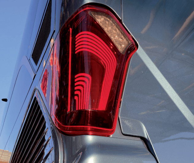 Passiamo al design. Il logo ‘Setra’ è affidato a un inserto tridimensionale che ha l’obiettivo di fornire l’impressione di una scritta cromata ‘galleggiante’ su uno sfondo nero lucido (una diarchia di colori invertita rispetto al passato, quando le lettere, in font nero, apparivano direttamente inserite nel fascione argenteo del frontale). Il nero adottato per lo sfondo del logo ha l’ulteriore benefit di nascondere la tecnologia radar installata per i sistemi di assistenza alla guida. Ineludibile, lo stemma Kässbohrer accompagna il logo Setra sul frontale. Frecce, luci diurne e posizione sono incastonate, sul frontale, negli inserti lineari che incorniciano dall’alto i gruppi ottici principali, incanalando la prospettiva verso il logo. Questo sui ComfortClass e TopClass. Sul due piani rimangono in auge le linee arancioni che integrano soltanto gli indicatori di posizione.
