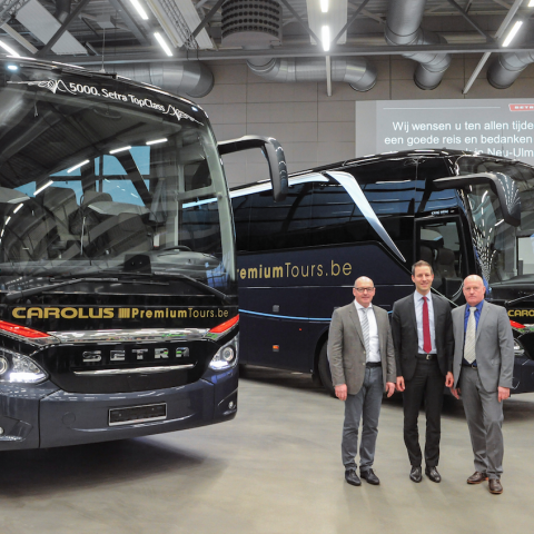 Il Setra TopClass si conferma uno degli autobus preferiti dalle compagnie di trasporto che continuano a sceglierlo per le proprie flotte. Proprio in questi giorni Mercedes-Benz ha consegnato a Carolus Reizen, un operatore belga, il cinquemillesimo autobus della gamma TopClass insieme ad altri due bus dell’alta gamma di Setra. Il veicolo d’eccezione, fanno sapere da Ulma, è finito in buone mani: Carolus Reizen ha infatti acquistato dal costruttore tedesco 48 autobus dal 1993 ad oggi e tutt’ora la sua flotta conta all’attivo 13 bus TopClass usciti proprio dagli stabilimenti di Ulma. L’S 516 HDH fresco di consegna girerà per tutt’Europa su una tratta “Premium Tours” e per l’occasione è stato dotato di sedute 40 confortevoli e di un soffitto vetrato panoramico. Il TopClass d’eccezione garantisce inoltre massimo comfort e sicurezza ai passeggeri grazie alle più moderne tecnologie di cui è dotato, come il Lane Assistant, il controllo adattivo di crociera con l’Acive Brake Assist 3 e il Predictive Powertrain Control (PPC).