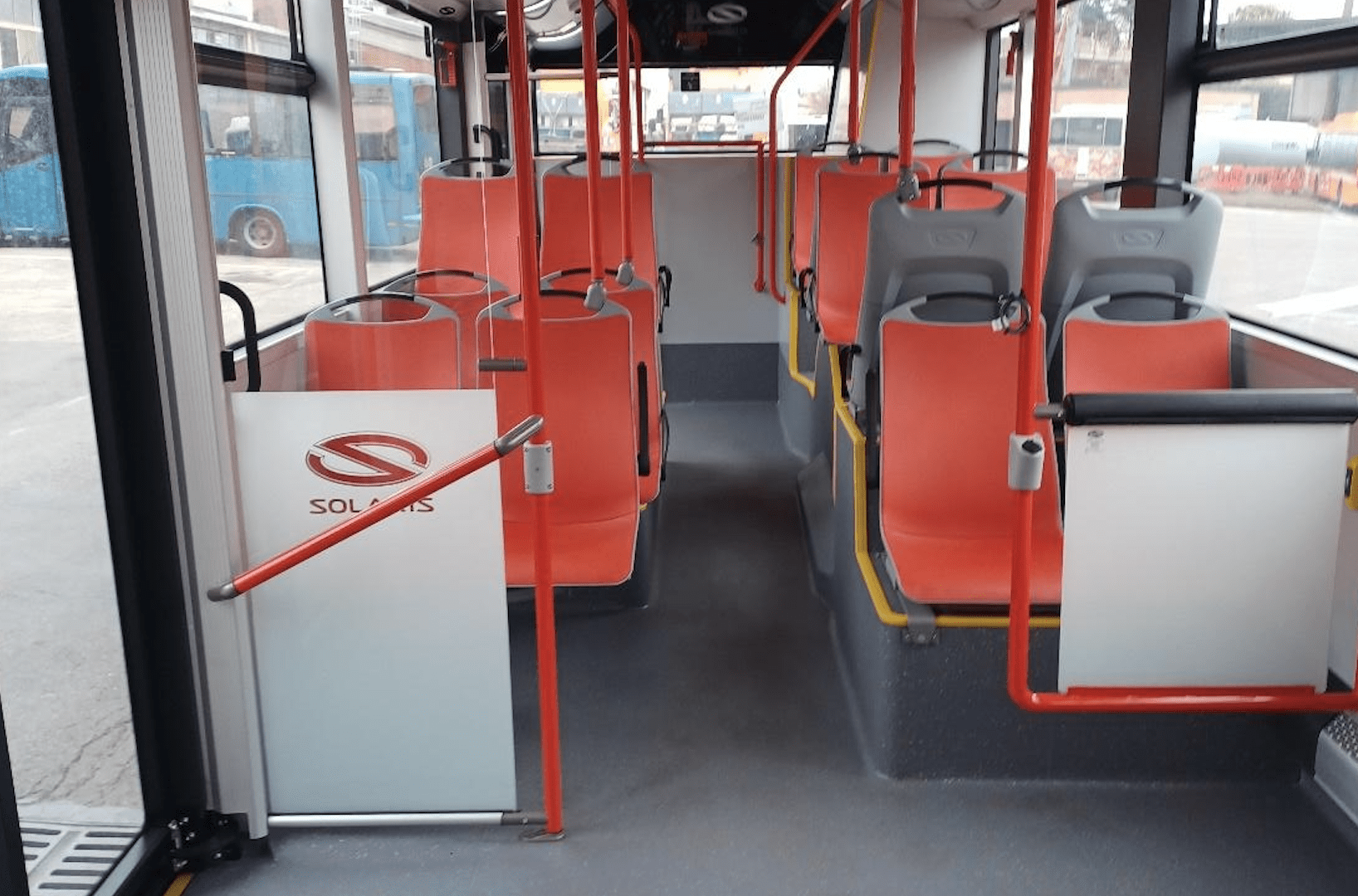 Gli spazi interni sono stati ben studiati, prevedendo un’area libera accanto alla seconda porta, ed è prevista la postazione per i diversamente abili. I sedili sono di colore rosso, e le sedute sono per lo più concentrate nella parte posteriore del mezzo. Le porte sono tre, di cui la prima rototraslante e le altre due ad espulsione.