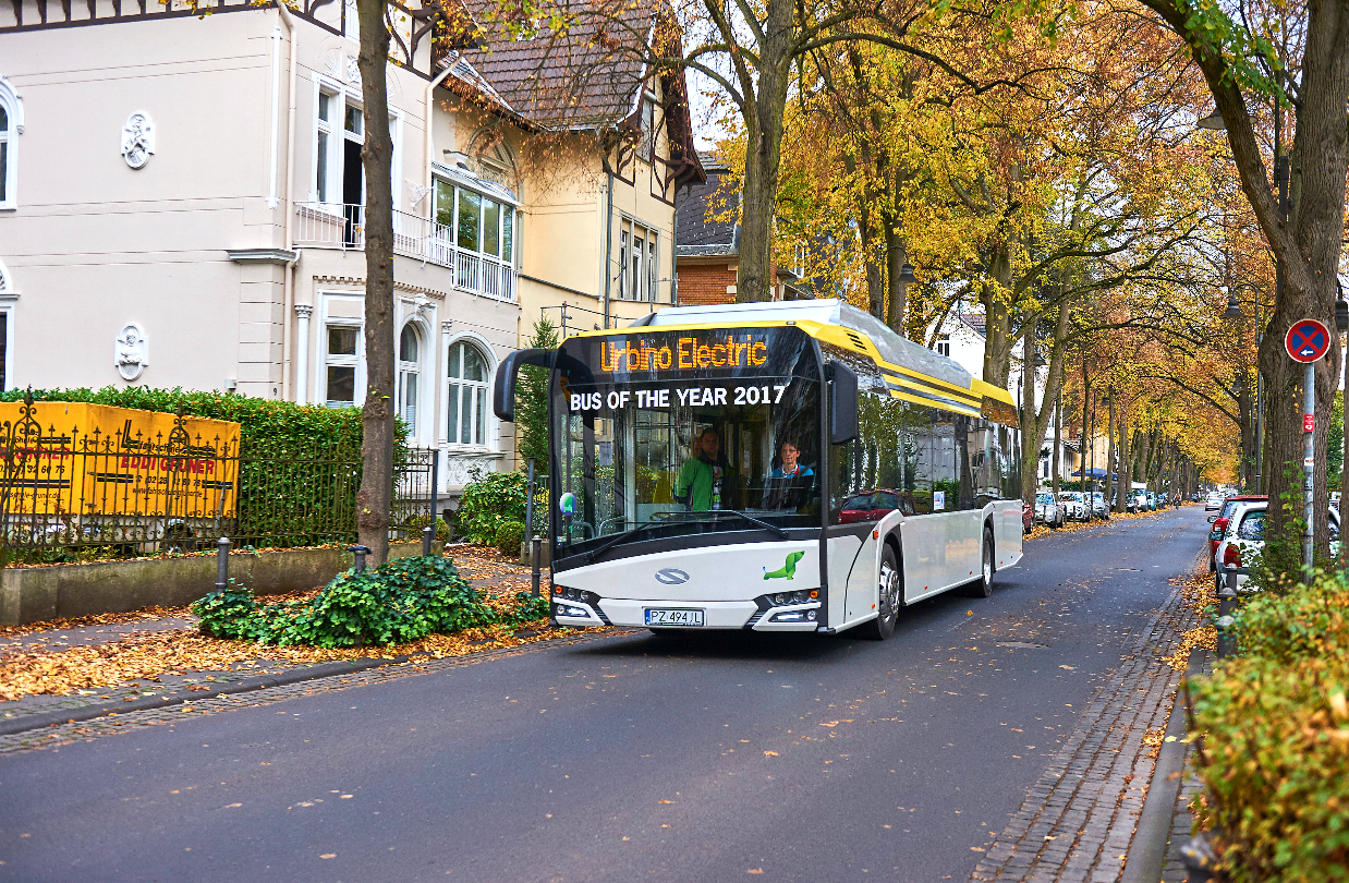 Solaris Urbino elettrico, l’autobus elettrico per il trasporto pubblico. Ecco uno dei due big in comparazione nella cornice dell’Ebus test 2016 organizzato dalla testata tedesca Omnibusspiegel. Il motore è sdoppiato e ‘delocalizzato’ in prossimità delle ruote posteriori: la trazione è appannaggio dei motori asincroni ai mozzi di Zf. La batteria dell’autobus elettrico per il trasporto pubblico di Solaris ha una capacità di 240 kWh. Oltre al plug-in, il mezzo si carica anche via pantografo. L’autonomia è di 285 chilometri, e vi possono trovare posto fino a 76 persone. L’Urbino 12 è ‘pulito’ anche nel sistema di climatizzazione: unico insieme al Vdl (non a caso, i due re del settore), vanta un impianto Konvekta UL 500 EM alimentato elettronicamente, senza utilizzo di gasolio.