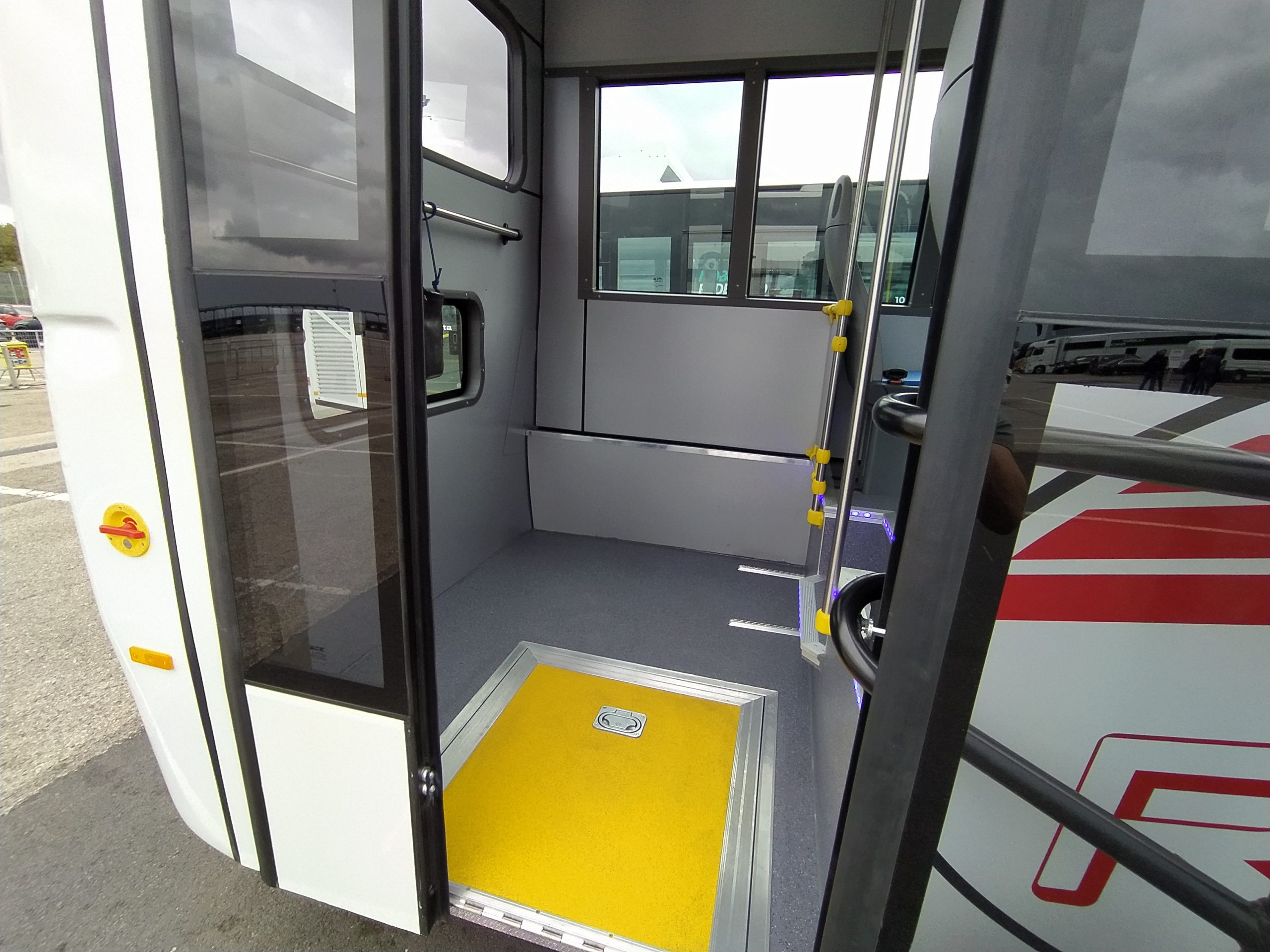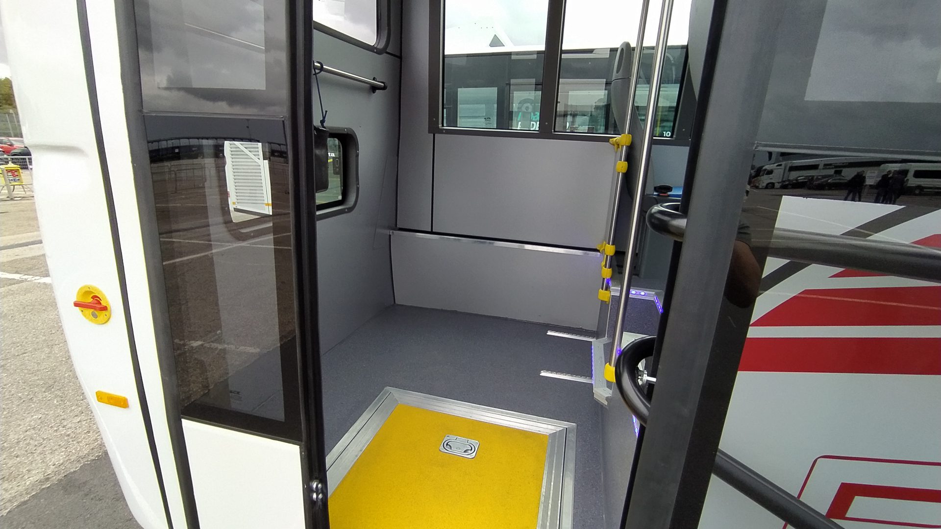 Nel paddock del circuito dedicato a Marco Simoncelli, il corto della casa cinese – in forza all’allestitore Ristè – è configurabile come scuolabus capace di 45 posti, oppure come citybus da 30 persone di capacità: 12 sedute e 18 in piedi.