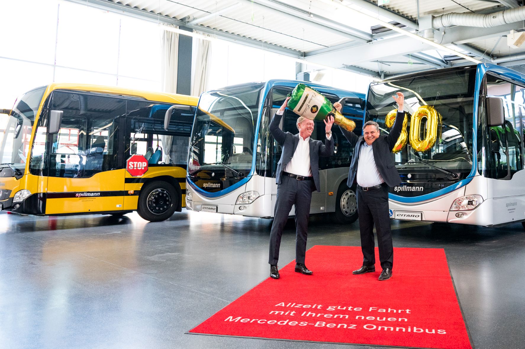 Il 25 marzo questa flotta unica è cresciuta di sei veicoli. Sì, perché. Rüdiger Kappel, responsabile delle vendite flotte di Daimler Buses Germania, ha consegnato sei autobus ibridi Mercedes-Benz Citaro a Bülent Menekse, amministratore delegato di Omnibusverkehr Spillmann GmbH. Uno di questi autobus urbani a servizio regolare rappresenta già il trentesimo veicolo a tema che l’azienda ha messo in servizio. Si chiama “Mondo del trasporto pubblico”.