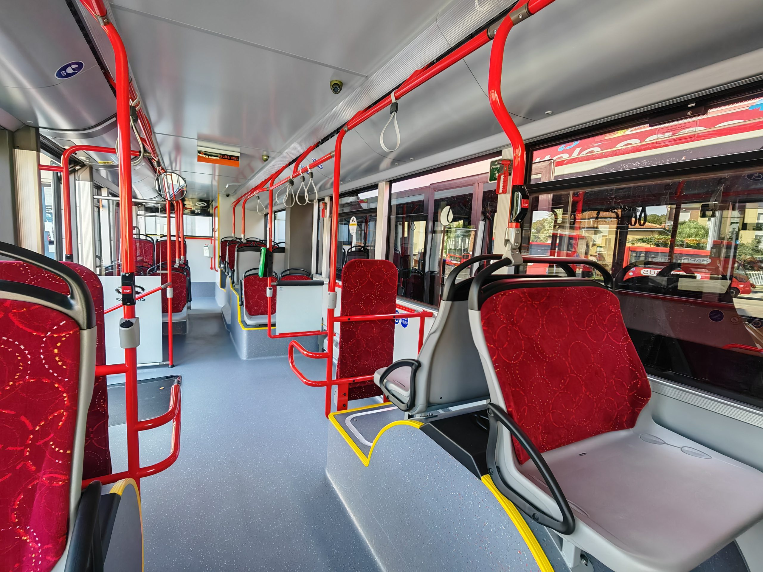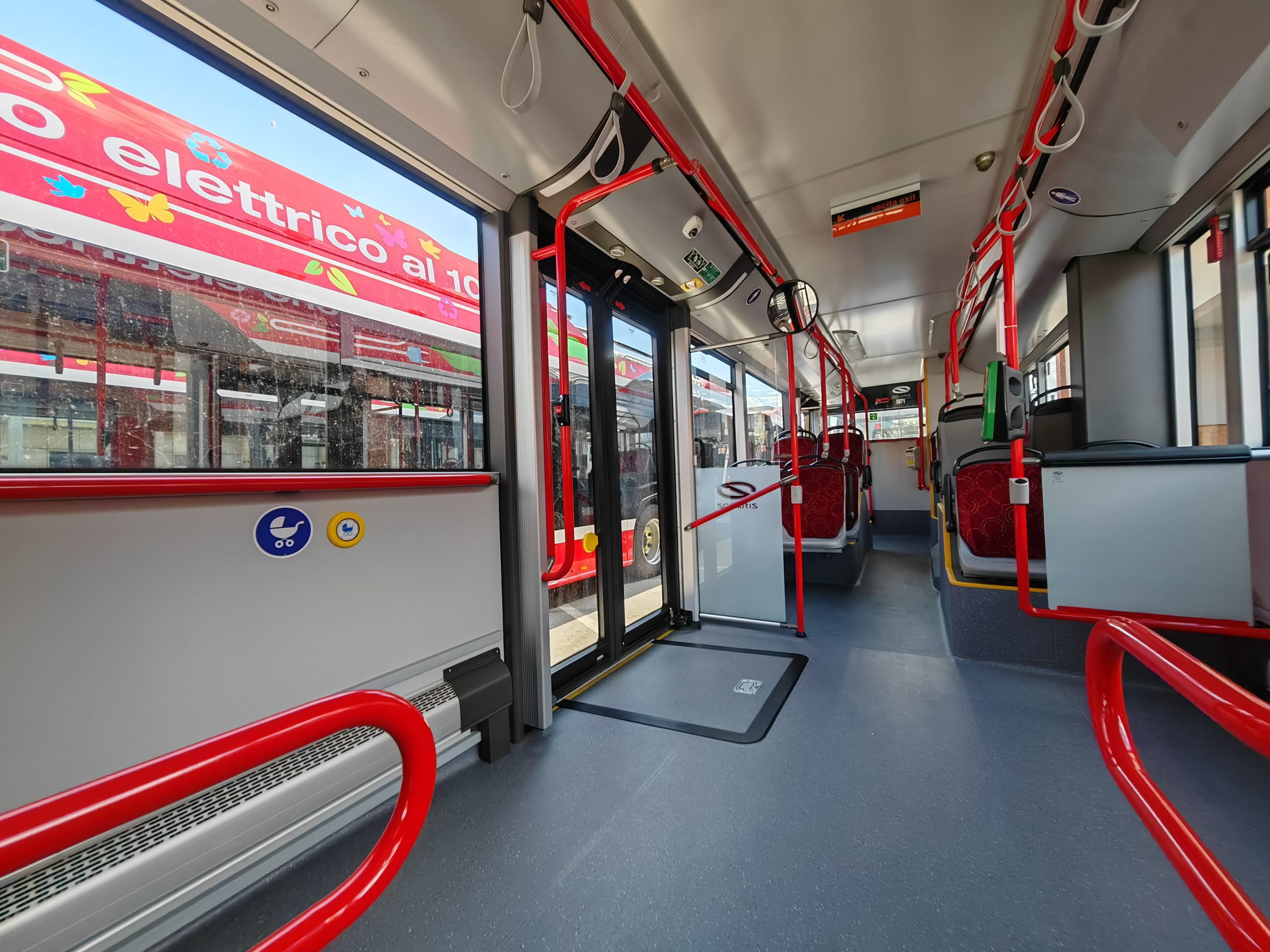 Tre porte permettono la salita e la discesa, con un dislivello massimo da terra di 32 cm, che si riducono a 25 in fermata, dove il bus può inclinarsi lateralmente per facilitare l’accesso a bordo. Per aiutare i passeggeri a orientarsi in città , è stato previsto un sistema di indicazione, attraverso display, della direzione di marcia e di altoparlanti per la diffusione di annunci vocali. L’illuminazione è a LED per un miglior risparmio energetico.