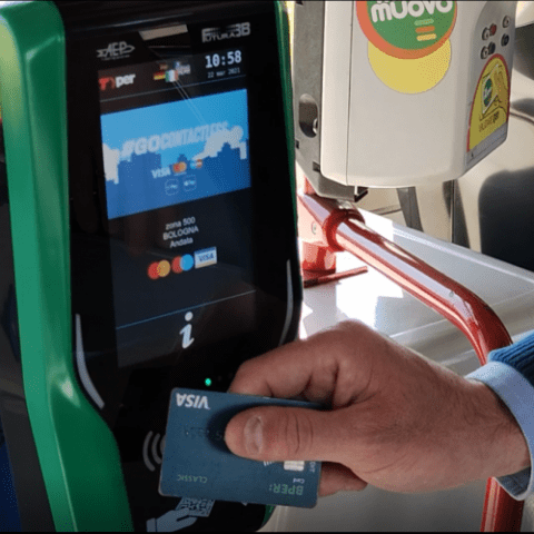 L’azienda di trasporti bolognese, pur continuando a garantire tutti i metodi di pagamento precedentemente in essere – tra cui quello con biglietto cartaceo a banda magnetica, con tessere a microchip o con moneta sulle linee urbane – ha introdotto prima la possibilità d’acquisto dei titoli di viaggio tramite app e successivamente anche tramite un sistema di pagamento contactless con carta bancaria di credito o di debito direttamente a bordo del bus.