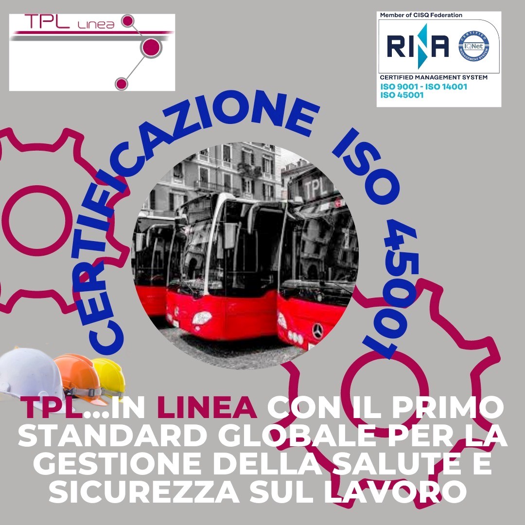 Più sicurezza e salute per la propria forza lavoro. Tpl Linea, società che gestisce il trasporto pubblico locale nella Provincia di Savona, ha conseguito la certificazione in conformità alla norma ISO 45001 (che si aggiunge alle certificazioni ISO 9001 e ISO 14001), a conferma della cura con cui l’azienda di trasporto savonese svolge il proprio lavoro nel rispetto dell’ambiente, della salute, sicurezza dei propri lavoratori e della stessa qualità del proprio servizio.