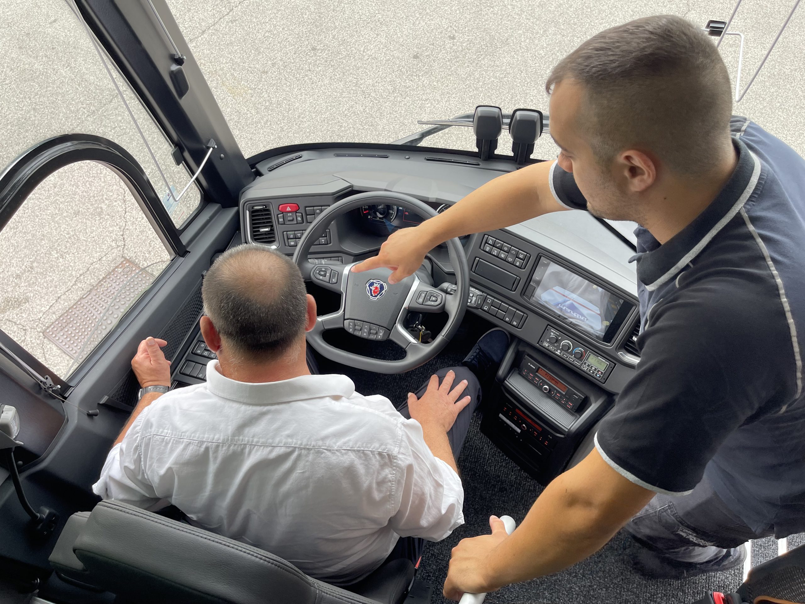 «Nello specifico si tratta del terzo Touring che acquista il Titolare Massimo Fiorese, ed è questo per noi un grande motivo di orgoglio e soddisfazione, poiché ci dà prova della fiducia che viene riposta in noi da clienti come l’azienda Martini Bus , confermandoci la qualità del livello di servizio che vogliamo offrire ai nostri clienti autobus. Ringraziamo l’azienda Martini Bus che ci ha nuovamente scelto come fornitori non solo di un veicolo, ma di un intero sistema di servizi Scania che lo aiuteranno a gestire al meglio il proprio business.», spiega Edoardo Rossi Amministratore Scandipadova, che ha curato la consegna. Ecco, proprio durante la consegna e è stato effettuato il Driver Training all’autista di Martini Bus, da parte del Master Driver Filippo, il quale ha spiegato nel dettaglio come sfruttare al meglio i nuovi sistemi di Scania, al fine di ridurre i consumi e aumentare la sicurezza nelle nostre strade.