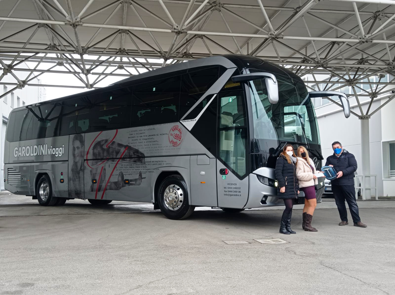 “Sono momenti duri – conferma Paola Garoldini -, ma i nostri servizi di noleggio sono ancora richiesti per gli spostamenti di personale di alcune realtà locali e poi abbiamo aderito all’invito della Regione Veneto che ha chiesto dei bus turistici per raddoppiare le linee più affollate e ridurre quindi l’assembramento sui bus di linea. Per noi è un po’ un ritorno al passato, perché mio padre Ugo aveva iniziato proprio così, lavorando per l’azienda pubblica veneta che a quei tempi gestiva le linee passeggeri extraurbane. Un motivo in più per dedicare a lui e al 50° anniversario della nostra azienda la particolare personalizzazione del nuovo NEOPLAN Tourliner”.