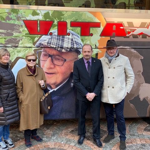 E ieri ad Aosta c’erano proprio tutti: le istituzioni territoriali, i dipendenti di V.I.T.A. spa, i rappresentanti di tante aziende di trasporto provenienti da tutta Italia e, ça va sans dire, la famiglia Calliera proprietaria dell’azienda di trasporto. E quando scriviamo «c’erano proprio tutti» intendiamo che non mancava proprio nessuno. Anche Sergio, il fondatore dell’azienda scomparso nel 2017, ha voluto ‘presenziare’. E non poteva essere altrimenti per un uomo che aveva come motto di vita una frase come: “non ha senso vivere senza condividere”. Per Sergio, come tutti sanno, sarebbe stato impensabile non partecipare alla festa della sua azienda stretta tra gli abbracci dei tanti collaboratori della prima ora. Il viso sorridente di Sergio Calliera, infatti, capeggiava sul Van Hool visto ieri ad Aosta. Una scelta che i figli Jean, Roberto e Francesca (oggi al timone dell’azienda) insieme a Piera, vedova Calliera, hanno voluto per ricordare il papà che nel 1961 ha fondato un’azienda che oggi vanta un parco veicoli da 4 a 94 posti a sedere ed è impegnata nel quadrante Nord-Ovest dell’Italia nei settori tpl, noleggio e linea a lunga percorrenza.