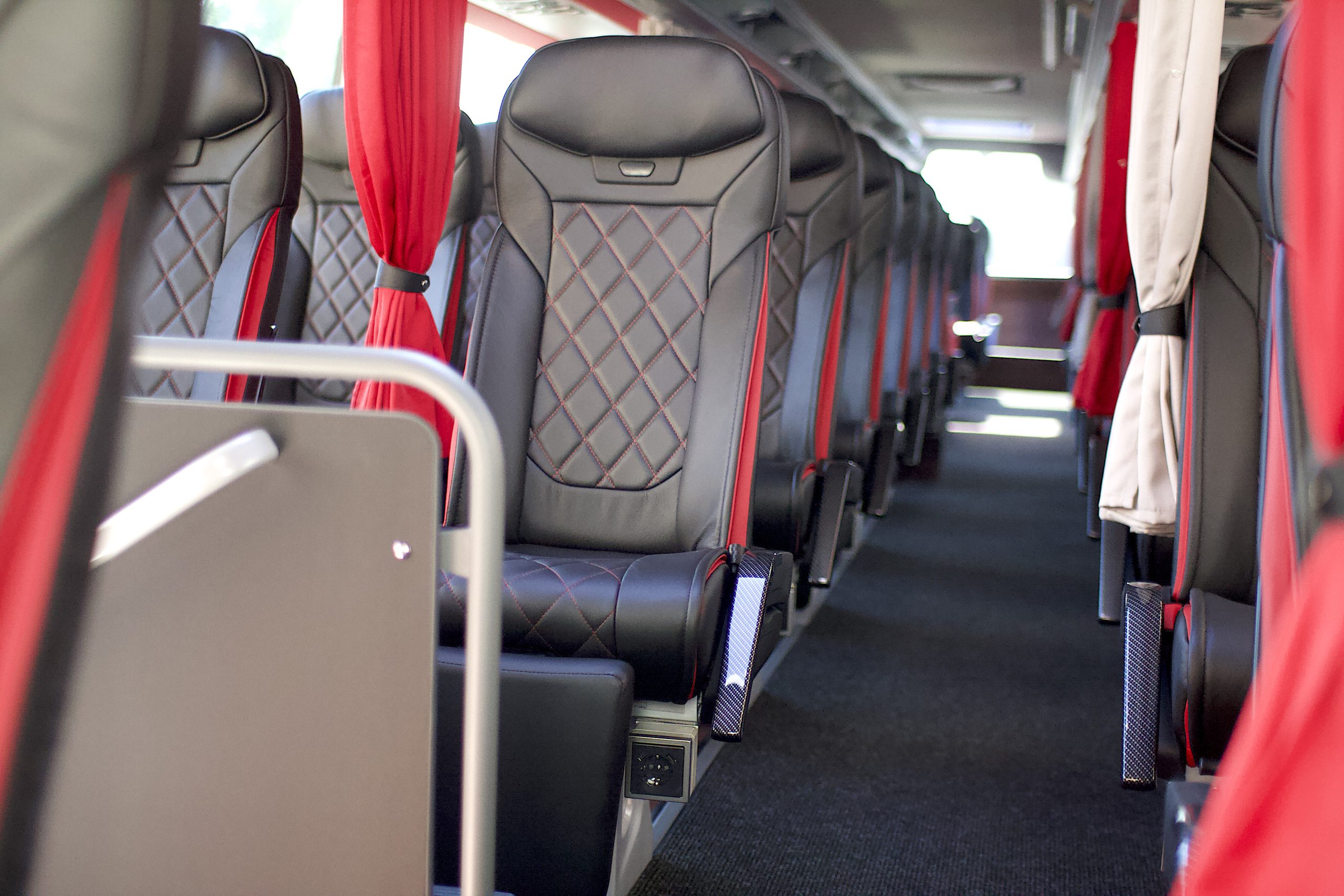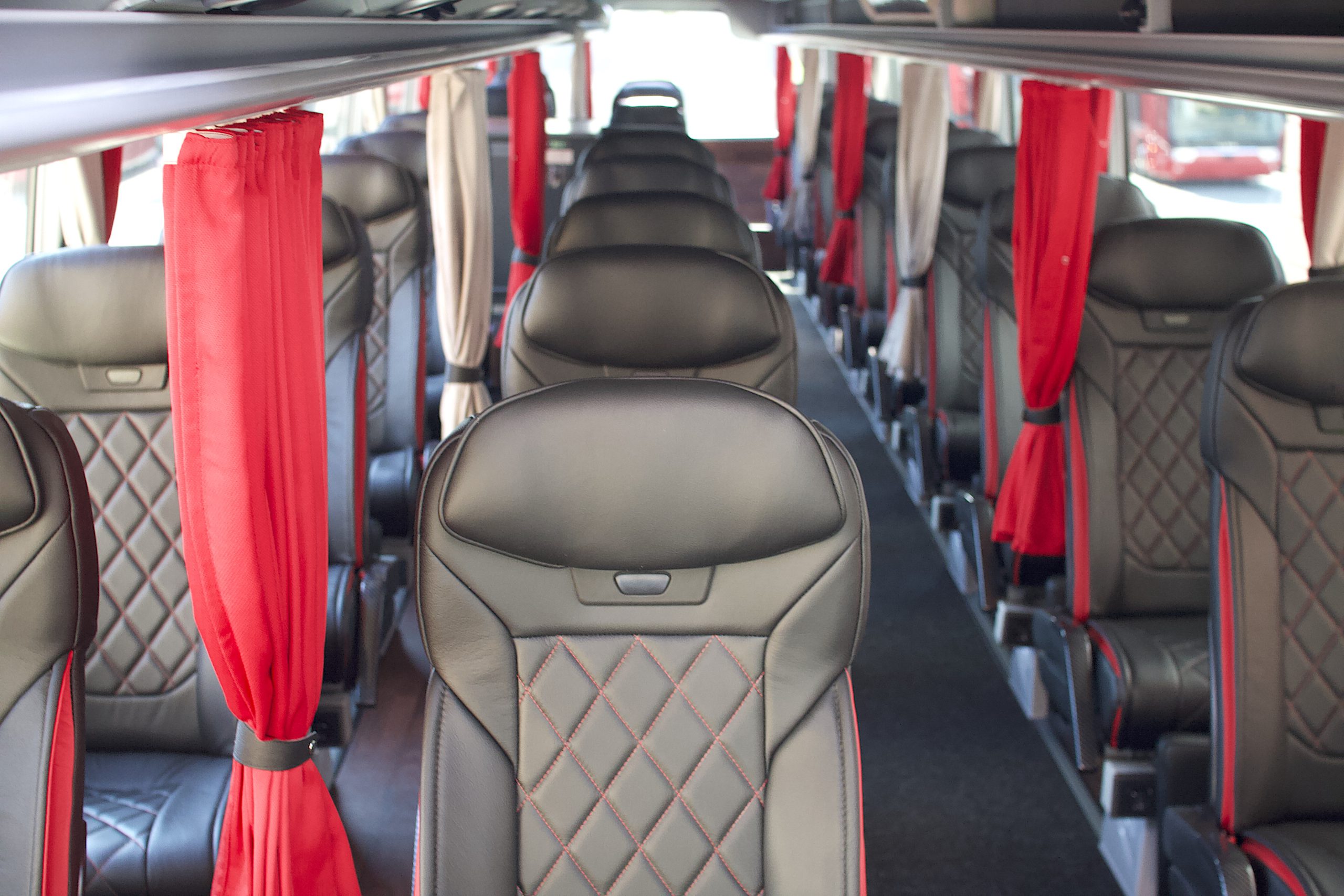 Il piano superiore di questi autobus offre ai passeggeri poltrone XXL disposte in file da tre sedili singoli, con le due sedute laterali e quella centrale distanziate in modo equo. Questo nuovo concetto innovativo garantisce livelli di comfort, privacy e facilità di movimento superiori.