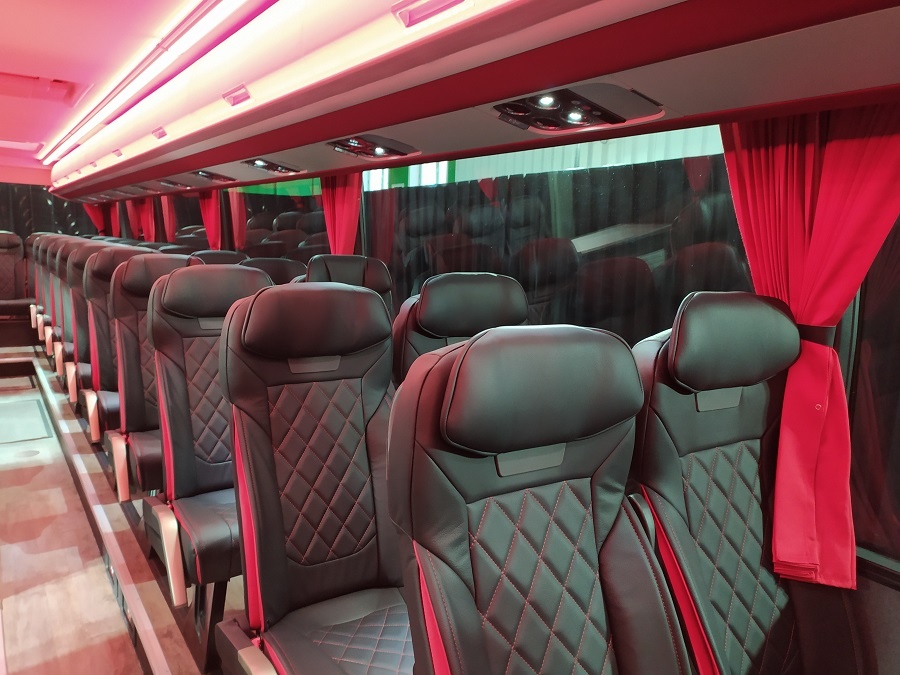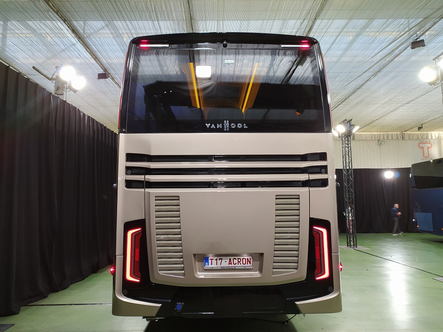 Alle tradizionali linee orizzontali sulla fiancata, una striscia cromata sul lato sottolinea il nome della serie, marcando la divisione tra la carrozzeria e il vetro dei finestrini. Sul frontale, decorato con discrezione con parti cromate, troviamo la superficie nera lucida tra i fari in linea con l’estetica Van Hool. Il posteriore, invece, è stato ingentilito da una pinna in tinta con la carrozzeria che conferisce un tocco dinamico al design delle fiancate. I fari anteriori e posteriori sono a tecnologia Led. Così come è a Led l’illuminazione del cockpit e quella delle sedute dei passeggeri, con luci che corrono per tutto il corridoio. Gli interni sono caratterizzati da superfici di colore nero: dai telai delle vetrature alle cornici dei sedili, passando per i binari degli stessi. La postazione di guida è stata riprogettata: soffitto a tinta chiara, quadro luci digitale e sistema multimediale aggiornato, con pulsantiera e touchscreen.