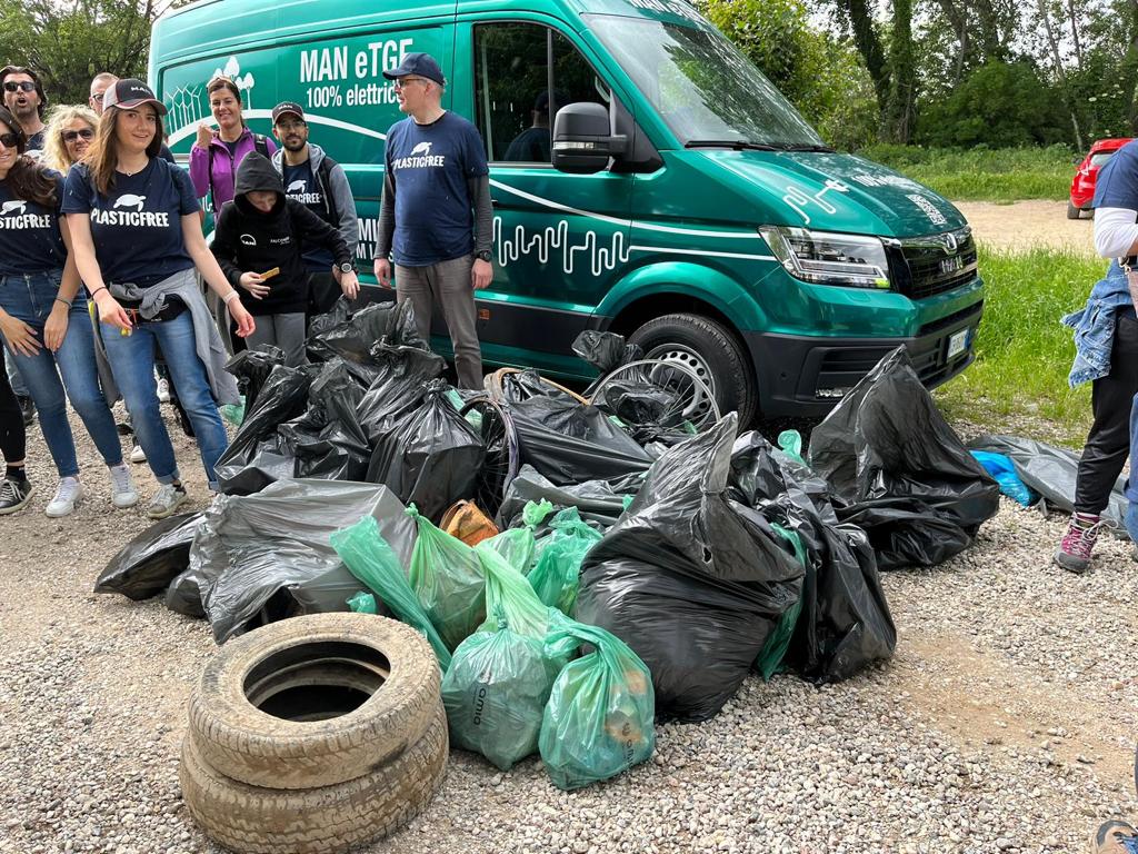 operazioni di clean-up ripulendo diverse zone verdi nel Parco dell’Adige Sud, lungo le rive del fiume che attraversa Verona. Su una superficie totale di circa 58 mila mq sono stati raccolti 670 kg di plastica e rifiuti, un gesto concreto che conferma l’impegno a 360 gradi del Gruppo Volkswagen in Italia per la tutela ambientale e che si inserisce tra le numerose attività promosse in questo ambito da tutti i brand. Anche dal punto di vista logistico si è posta particolare attenzione all’impatto sull’ambiente prediligendo la mobilità elettrica, l’utilizzo di autobus per la movimentazione dei gruppi più numerosi e impiegando il MAN eTGE, furgone cento per cento elettrico, per la movimentazione dei materiali necessari all’organizzazione.