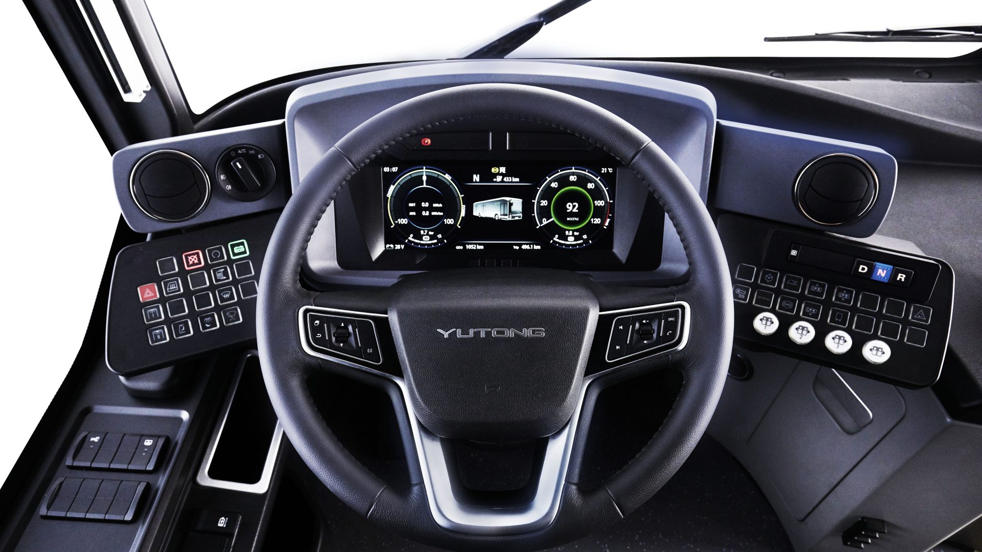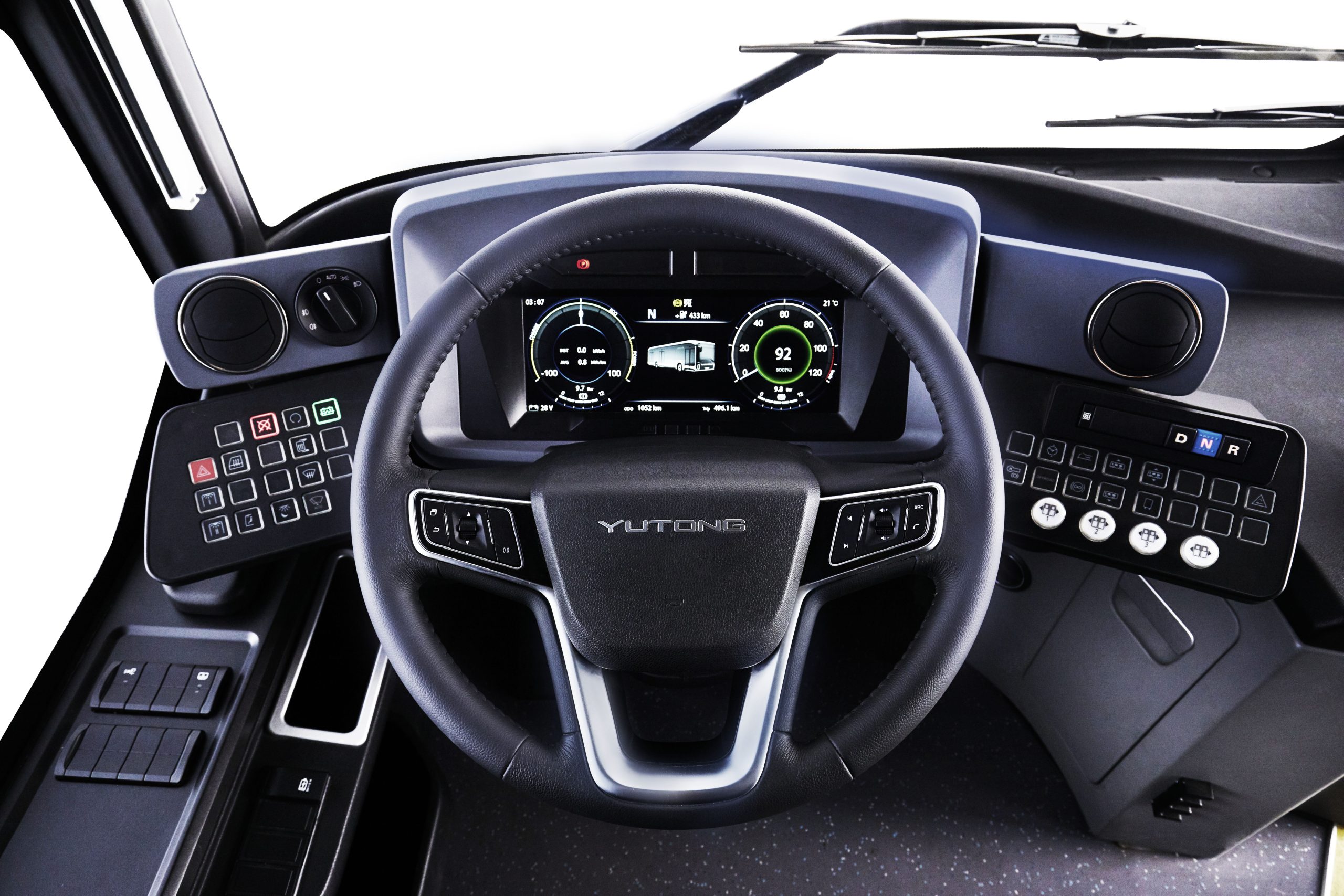 Qui la parola d’ordine è comfort. Il cockpit isola in modo efficace il conducente dai passeggeri, migliorandone la sicurezza, mentre la chiusura elettromagnetica a ventosa della porta migliora la facilità d’uso. L’altezza del volante e la distanza anteriore e posteriore possono essere regolate in base alle esigenze dell’autista, agevolato da strumentazione Lcd completa.